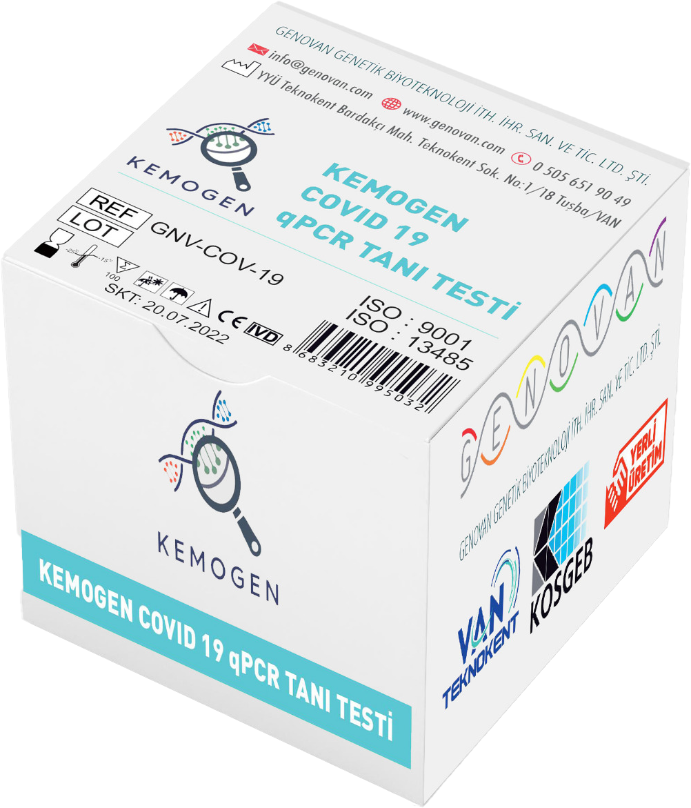 Kemogen Covid 19 qPCR tanı kiti, nazofarengeal, orofarengeal, balgam ve bronkoalveolar lavaj gibi solunum yolu örneklerinde bulunan SARS-CoV-2 RNA’ sının ilgili hedef bölgelerinin varlığını tespit etmeye yönelik multipleks tabanlı real time qPCR kitidir.